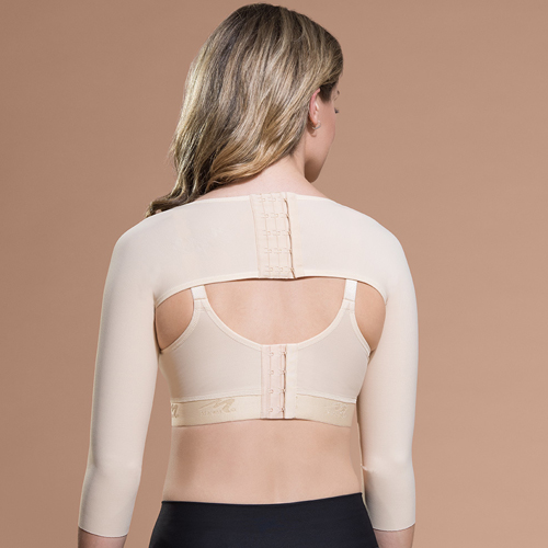 Aó định hình bắp tay sau hút mỡ Marena Aó gen vai cánh tay phẫu thuật hút mỡ bắp tay Marena Được thiết kế với vải ComfortWeave® được cấp bằng sáng chế của chúng tôi, áo bó tay dài SM có lớp bảo vệ dài 3/4 chiều dài cánh tay, và móc và mắt khóa 3 hàng có thể điều chỉnh được ở giữa lưng. Cho tay vào tay áo và điều chỉnh cho phù hợp với bạn – sau đó kéo móc và mắt khóa ở sau lưng, nơi đường chỉ được may rất tự nhiên.