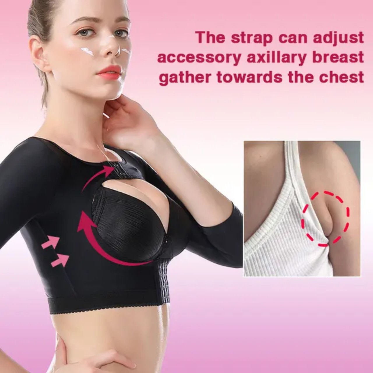 Gen nịt bắp tay được thiết kế với các hàng móc cài dưới chân ngực có thể điều chỉnh; Đồng thời giúp tăng lực siết làm giảm mỡ lưng nách;
